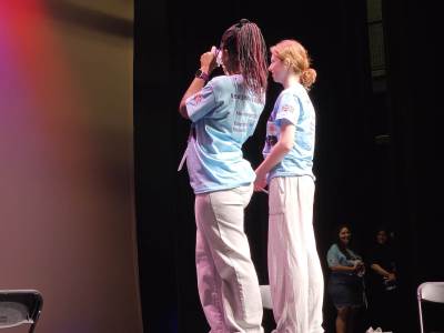 After lunch, it was time for New Bridge and Ridgewood students to showcase their Armando improv skills, on stage, in front of a live audience for the second time this week.
