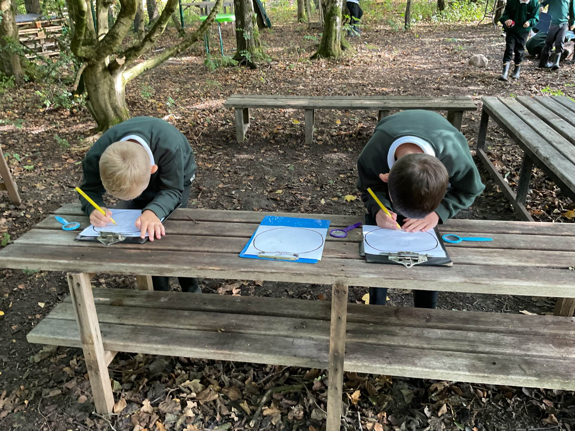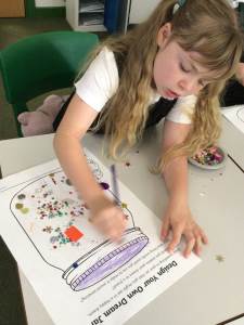 Beech, Holly, Fir, and Olive classes coloured pictures of Dahl’s characters to decorate the library areas, adding inspiring Roald Dahl quotes to the displays. Pine Class went on a ‘James and the Giant Peach’ minibeast hunt in the forest, drawing their discoveries into “peaches” and enjoying peaches as a snack. Meanwhile, Blossom and Jasmine classes made dream jars in Science, and Maple class designed their own chocolate bars in Literacy.