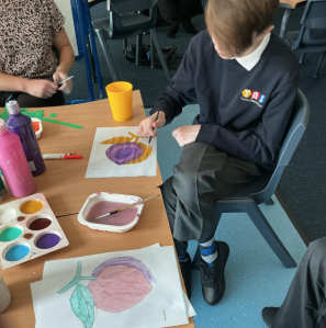 Some classes enjoyed Roald Dahl-themed food, including Matilda’s pancakes, George’s Marvellous Medicine milkshakes, James’ giant peaches, Bruce Bogtrotter’s cake, and even Snozzcumber. Pupils also created their own Wonka Bars with imaginative fillings, and produced Roald Dahl character-themed artwork, such as Mr Fox masks and painted peaches. It was a joyful day that inspired creativity and a love of reading.