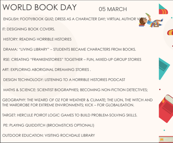 · Finally, Outdoor Education groups visited Rochdale Library, where they explored the space and exchanged their World Book Day vouchers.