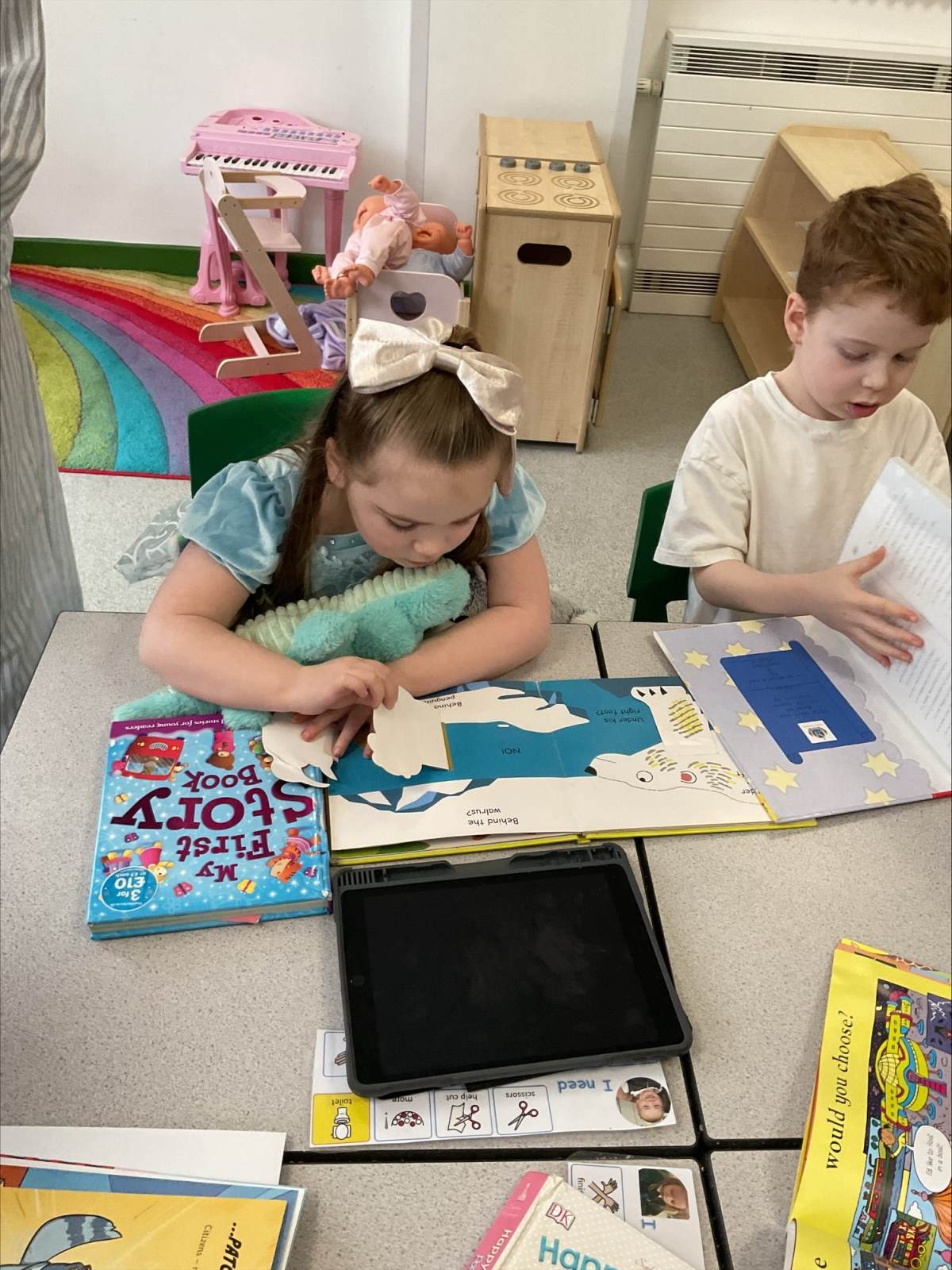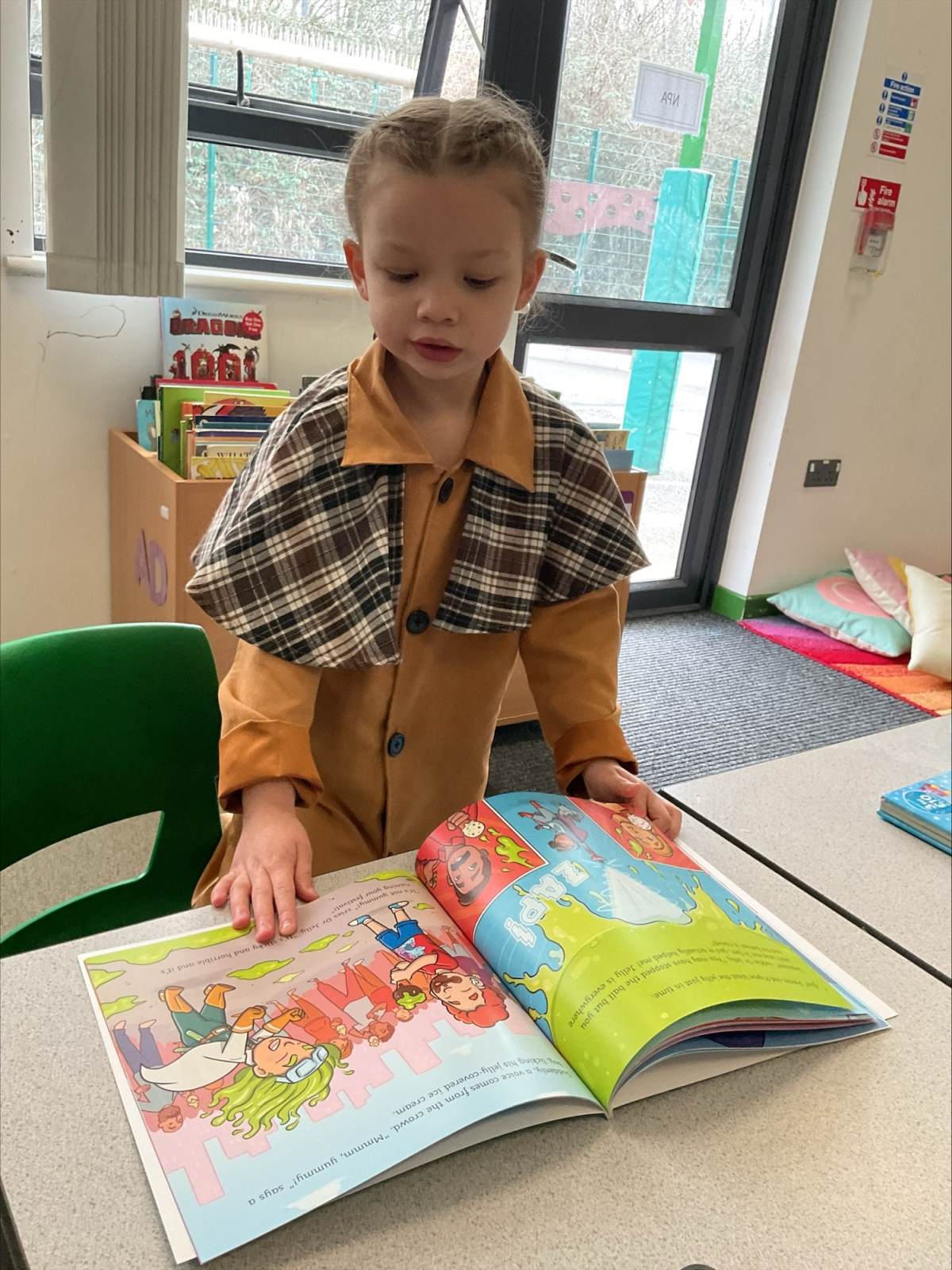 The excitement continued with a Traditional Tales character hunt, sending pupils exploring across the school to track down well-known storybook figures. Back in classrooms, children shared their favourite stories, creating warm moments of connection as they celebrated the joy of reading together.